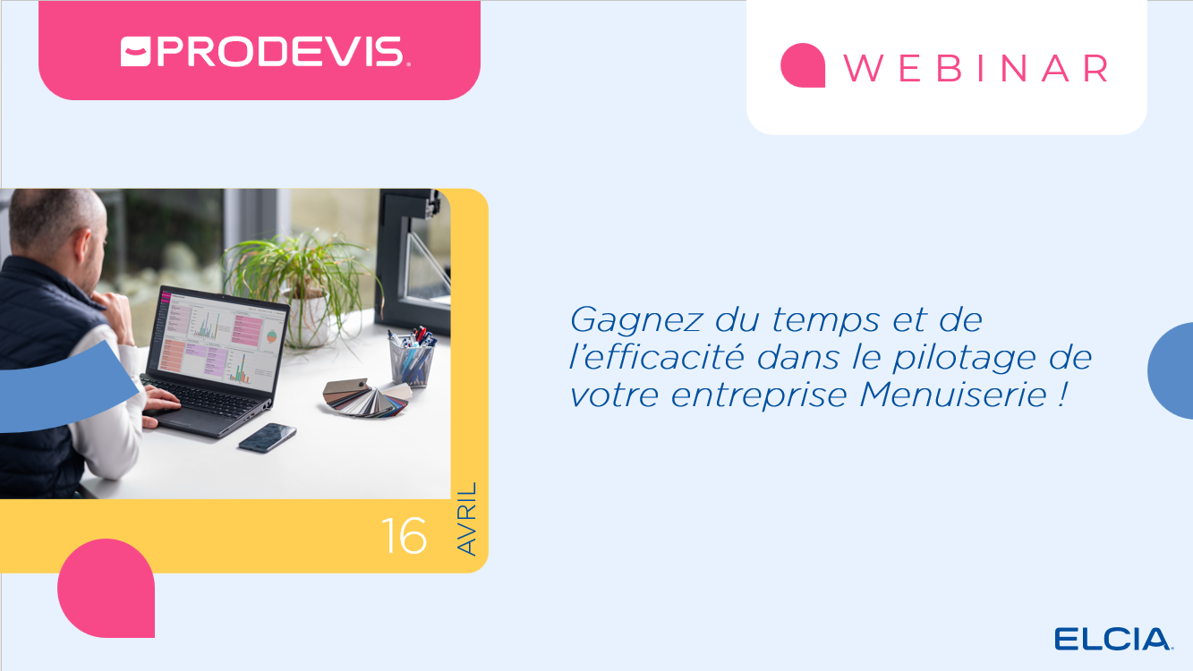 Chaque mois, retrouvez les webinars ProDevis ! Profitez d’une démo en ligne réalisée par l’un de nos 12 formateurs pour vous permettre de (re)découvrir les fonctionnalités clés de votre logiciel de devis et gestion Menuiserie.